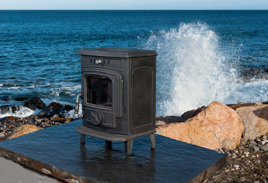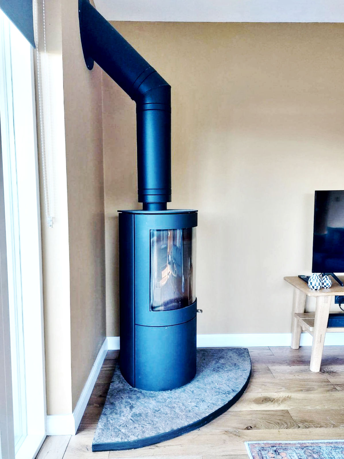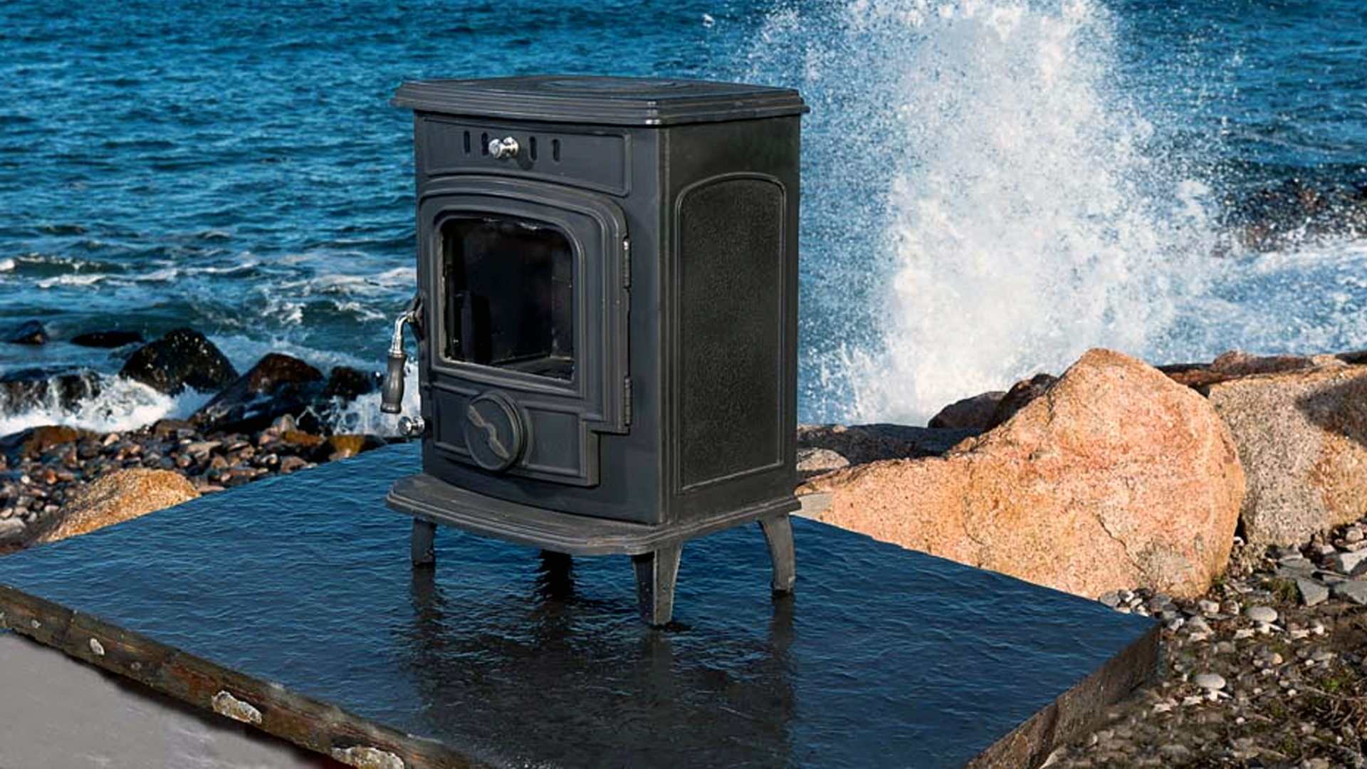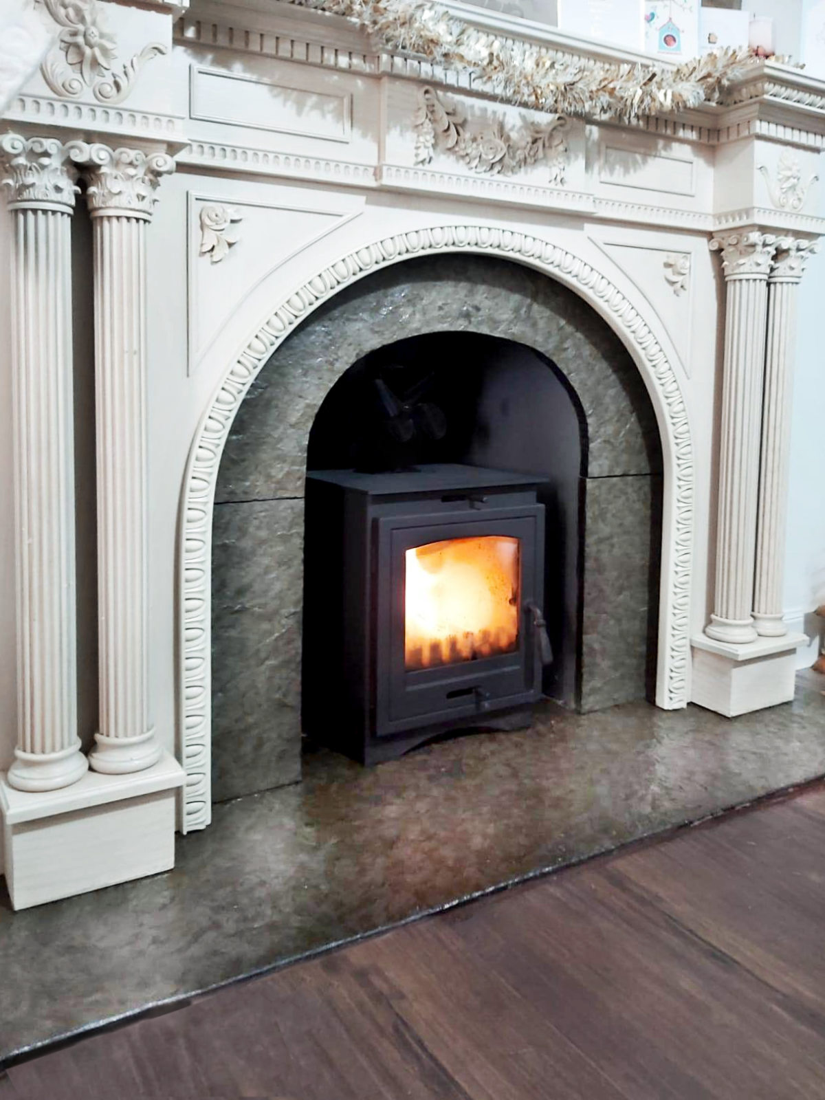 curved free-standing 35mm thick blue-grey riven Caithness slate hearth