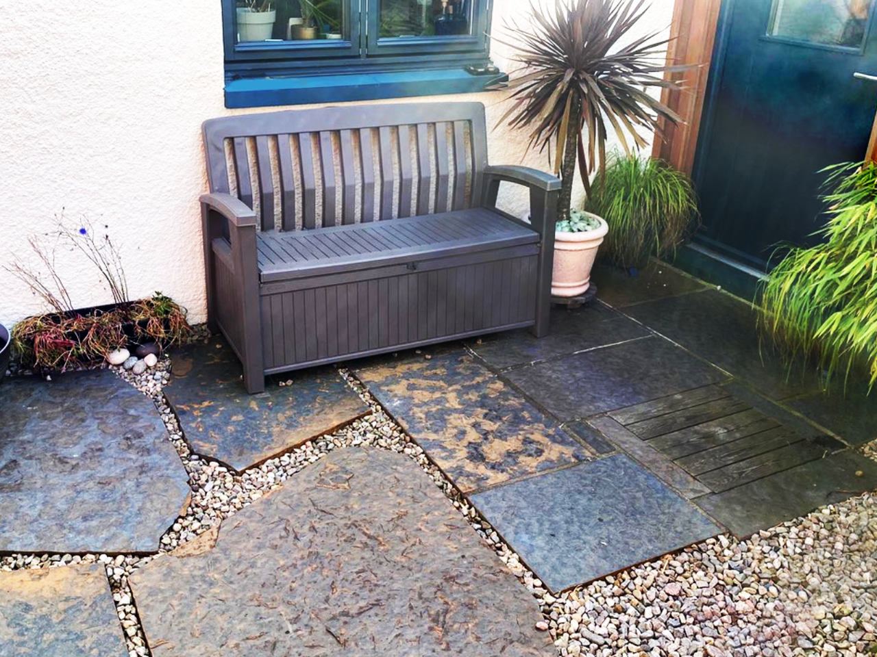 dark, riven, 2” thick caithness flag-stone natural shape, with natural external edges